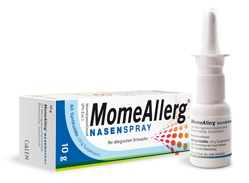 MomeAllerg® Nasenspray wird bei Erwachsenen zur symptomatischen Behandlung der Beschwerden eines Heuschnupfens (saisonale allergische Rhinitis), nach der Erstdiagnose eines Heuschnupfens (saisonale allergische Rhinitis) durch einen Arzt, angewendet. Heuschnupfen, der zu bestimmten Zeiten im Jahr auftritt, ist eine allergische Reaktion, die durch das Einatmen von Pollen von Bäumen, Gräsern und auch Schimmel und Pilzsporen hervorgerufen wird. MomeAllerg® Nasenspray vermindert die Schwellung und Reizung in Ihrer Nase und lindert dadurch Niesen, Jucken und eine verstopfte oder laufende Nase, die durch Heuschnupfen hervorgerufen wurden.